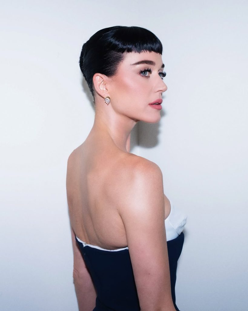 Katy must’ve known they were a very recognisable look, because it got to the point where she burned her blue wig in 2013 to signify the end of that chapter of her life. Very dramatic, but also kinda iconic, right? These days she goes back and forth with her bangs but sticks to black hair.