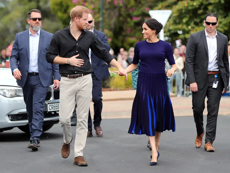 One of the things Meghan wore during her royal tour in 2018 was a royal blue Givenchy outfit. The look featured a long pleated blue skirt that photographed weird. In some photos it seemed like it was a bit see-through, while in others the trail looked unquestionably solid. It’s actually impossible to tell if the fabric looked sheer due to lighting and camera angles or not, but people like to talk, so it still made headlines.