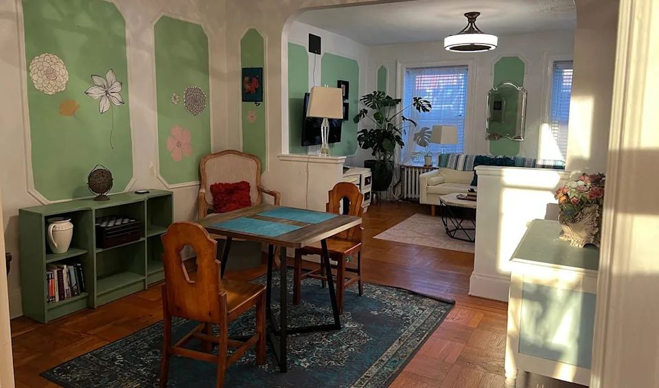 Located in the heart of Hoboken and within walking distance of the waterfront, this cozy brownstone apartment has plenty of character and charm. (Fun fact: the apartment was used as the ‘Green Room’ for the filming of A Complete Unknown.) By all accounts, the apartment is pristine and the location—steps away from numerous shops and restaurants, a quick train ride away from Manhattan and just a short drive to MetLife—is hard to beat.