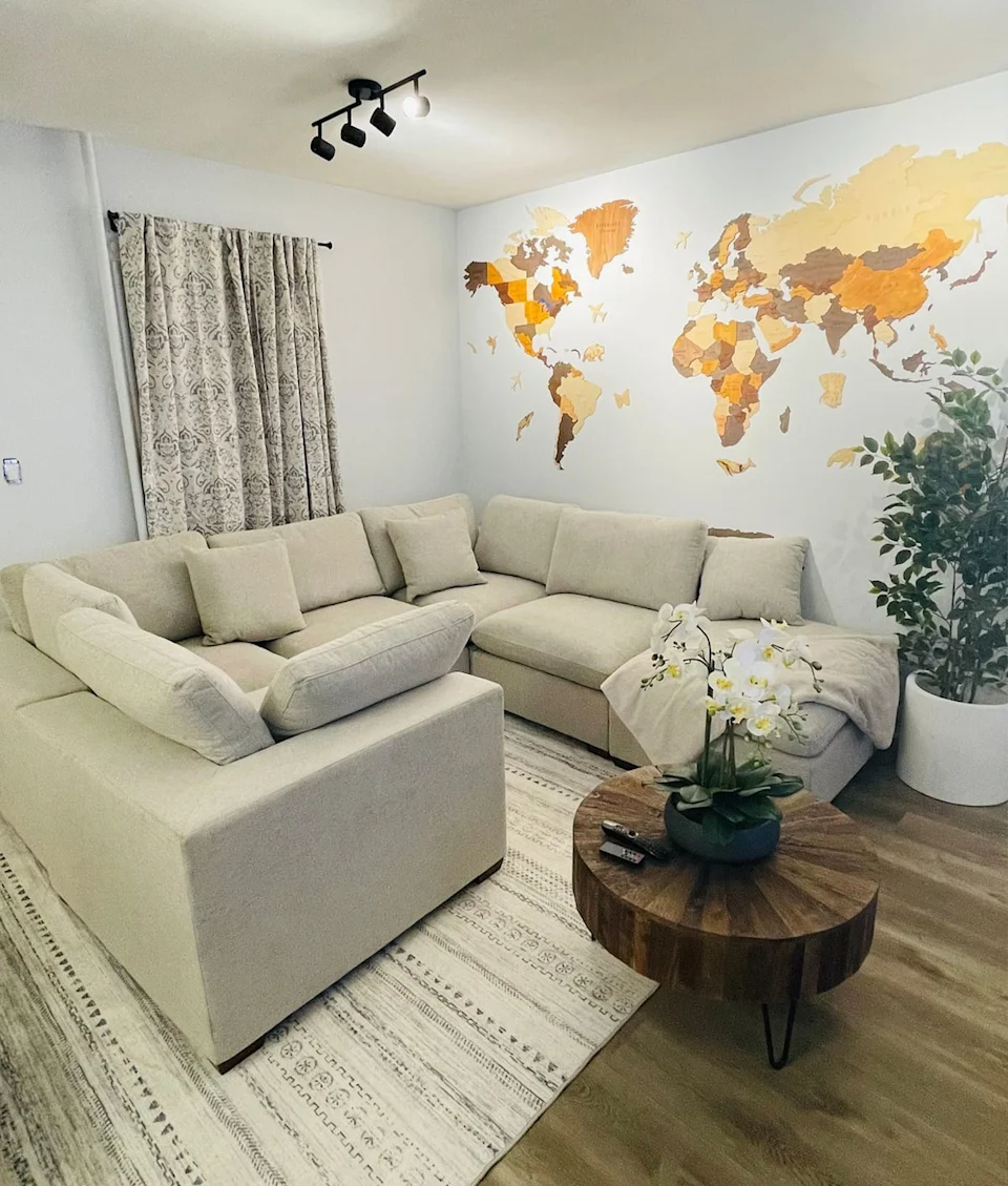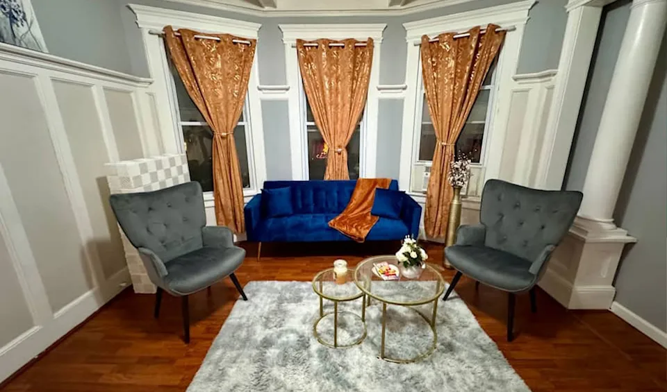 This beautifully decorated gem in East Orange is centrally located, well-appointed and cozy as can be. Numerous amenities include a massive 85-inch TV (excellent for watching replays and sports commentary!) and other high-tech features, like an Alexa that controls the lights and the A/C. Other highlights include a huge and very plush sectional sofa that can be arranged as a bed and a king-size bed that is, by all accounts, extremely comfortable.