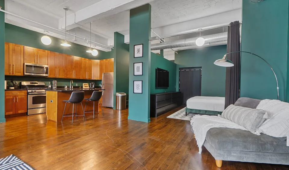 This immaculate loft in Newark is extremely spacious and boasts sweeping views of the city skyline that guests can enjoy from the comfortably furnished rooftop. The modern interior design is easy on the eyes and, according to reviews, “the couches and bed make you feel like you’re laying on clouds.” Best of all, the location is central to everything—including MetLife, Manhattan, Newark International Airport and more.