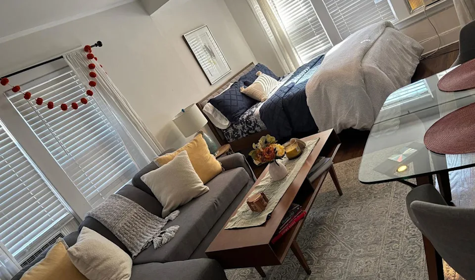Spacious, modern and oh-so stylish, this newly renovated one bedroom in Montclair is downright dreamy. The well-lit and airy interior features designer furnishings, modern appliances, and everything you need for a comfortable stay. Indeed, glowing reviews—like this one, which reads “this attic apartment was exceptional…a beautiful, stylish, and calming space that made our stay so comfortable. From the spotless rooms to the warm, inviting decor, everything was perfect”—confirm that you will not be disappointed. Best of all the location, close to MetLife of course, is within walking distance of all that downtown Montclair has to offer.
