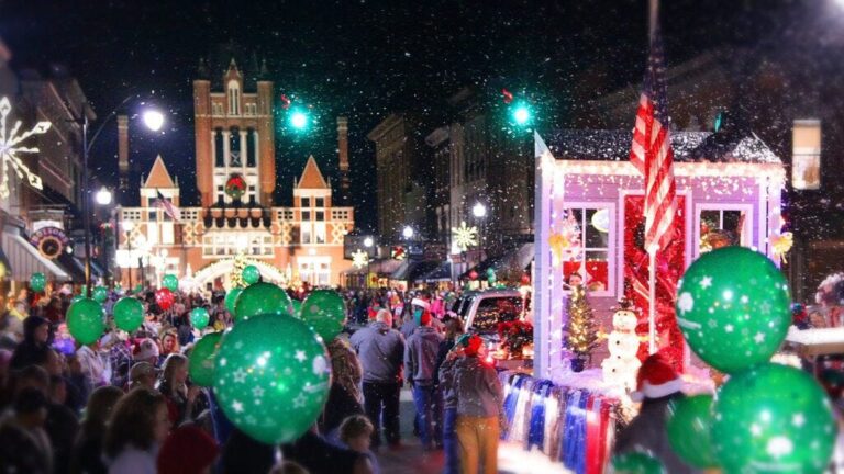 Dubbed “The Most Beautiful Small Town in America” by Rand McNally and USA TODAY, Bardstown boasts a walkable downtown with almost 200 historic buildings. Brick sidewalks and festive decor create a nostalgic holiday vibe, and the large Christmas tree and ice skating rink in the town square only enhance the appeal.
