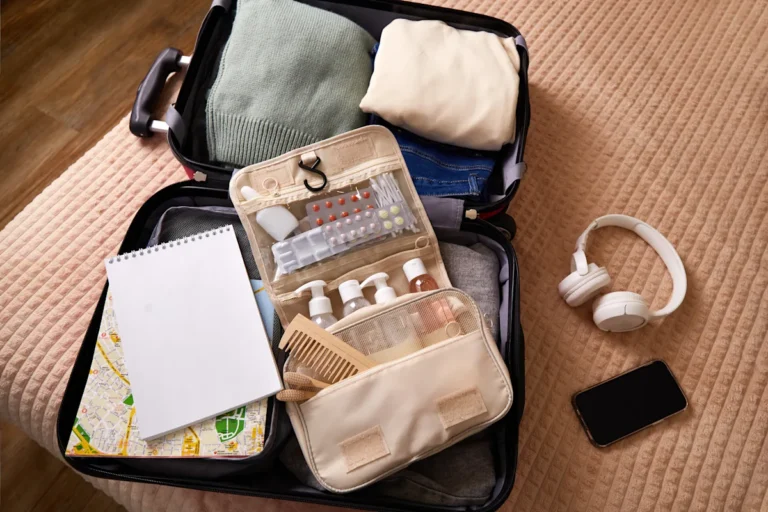 A good toiletry bag makes Thanksgiving travel less stressful, especially when you need everything in one place. I use a structured travel toiletry bag because it keeps bottles upright and prevents spills in my luggage. It also helps me move faster at security since everything is already sorted.