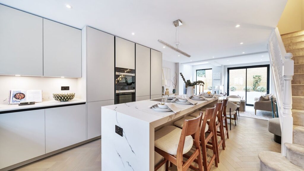 “You’ll make sure that there’s lighting, seemingly downlights, over the kitchen worktops, and to place lighting, maybe a press release pendant, over the eating desk,” explains Hugh Metcalf, Deputy Editor of sister title Livingetc.com. “That is necessary as it’ll imply you getting the wiring in the fitting place is essential early on, even when it must be barely adjusted as soon as you have made selections such because the type and measurement of eating desk you select.”
