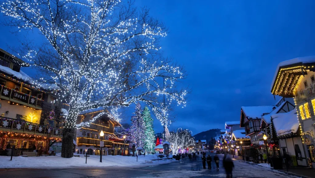 With its Bavarian-style village, Leavenworth is picturesque in the fall thanks to its lively Oktoberfest scene. But it is also, without a doubt, one of the most charming places in the country to experience a winter wonderland. Known as the “Village of Lights,” Leavenworth decks out the town with all kinds of Christmas lights and decorations, and offers a full lineup of holiday-themed activities, including shows, a gingerbread house competition, and sleigh rides.