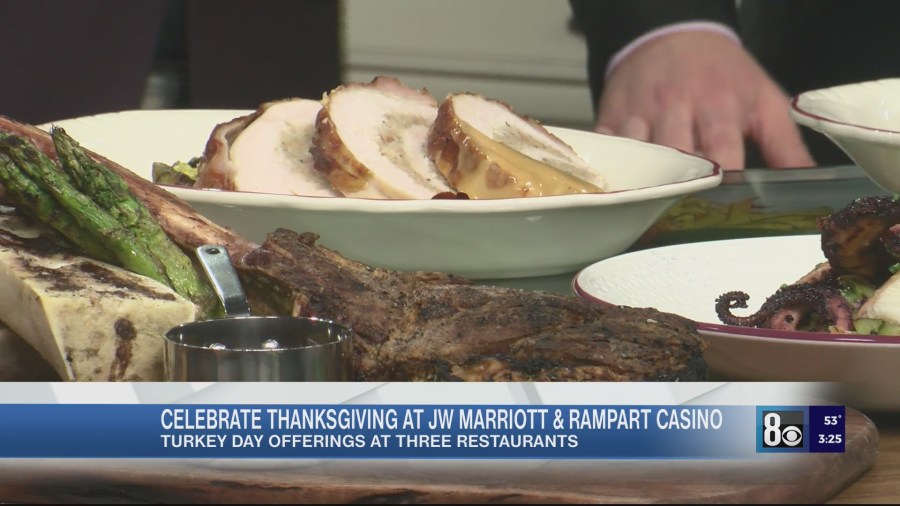 Celebrate Thanksgiving at JW Marriott Las Vegas Resort & Spa and Rampart Casino at The Resort at Summerlin, with “Turkey Day” menu options at Hawthorn Grill, ai Pazzi, and Market Place Buffet. Carter Pike, Director of Banquets, JW Marriott Las Vegas Resort & Spa joined us in the kitchen with a preview of their menu.