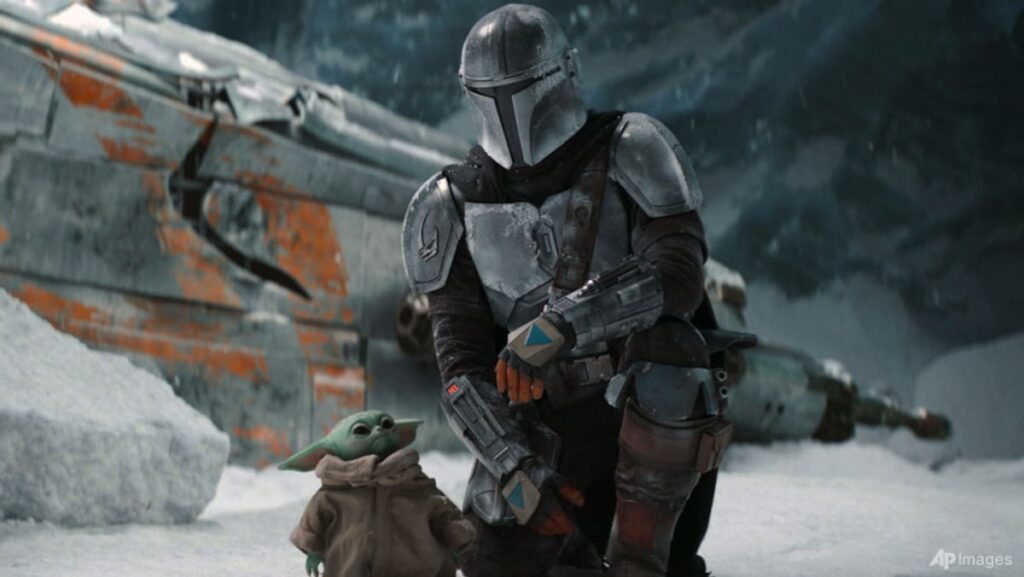 The title character, a helmeted bounty hunter, and his companion, referred to as Child Yoda or Grogu, debuted on the Disney+ streaming service in 2019.