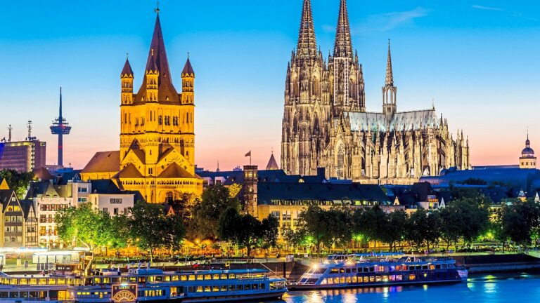 The route follows one of Europe’s most storied waterways. The Rhine has long been the lifeline of trade and culture, connecting medieval towns and castle-topped hills from the Low Countries to the Alps. Every stop highlights a new chapter of history—from the spires of Cologne Cathedral (photo to the left) to the half-timbered houses of Strasbourg’s Petite France district.