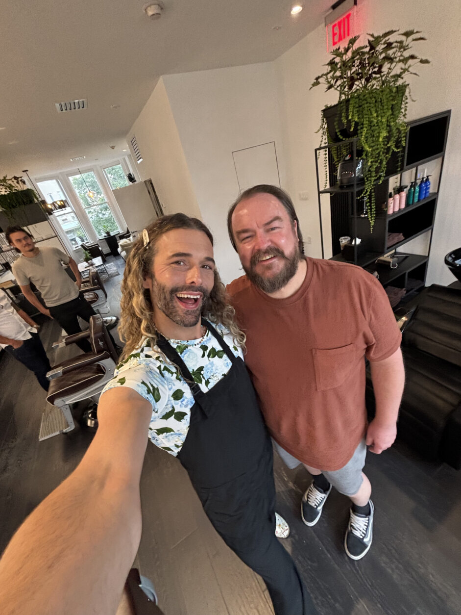 Mike Devereaux and Jonathan van Ness after the makeover.