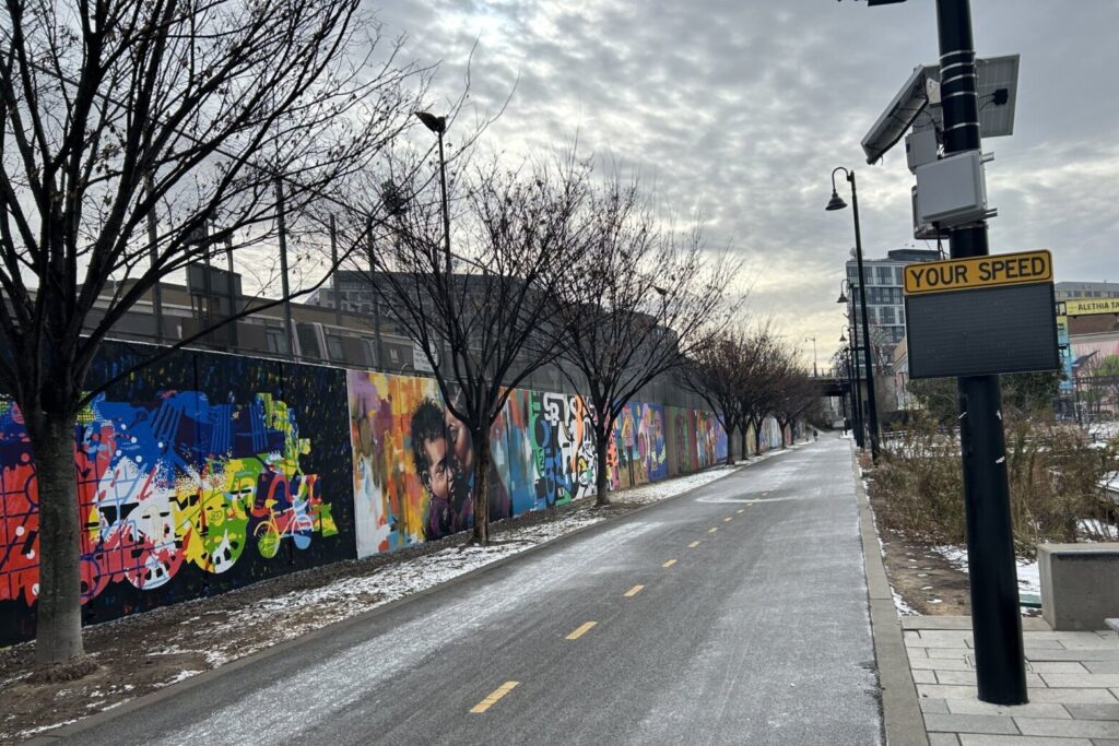 Cyclists and people riding scooters along the Metropolitan Branch Trail are being greeted with digital messages, either telling them their speed is safe or urging them to slow down.