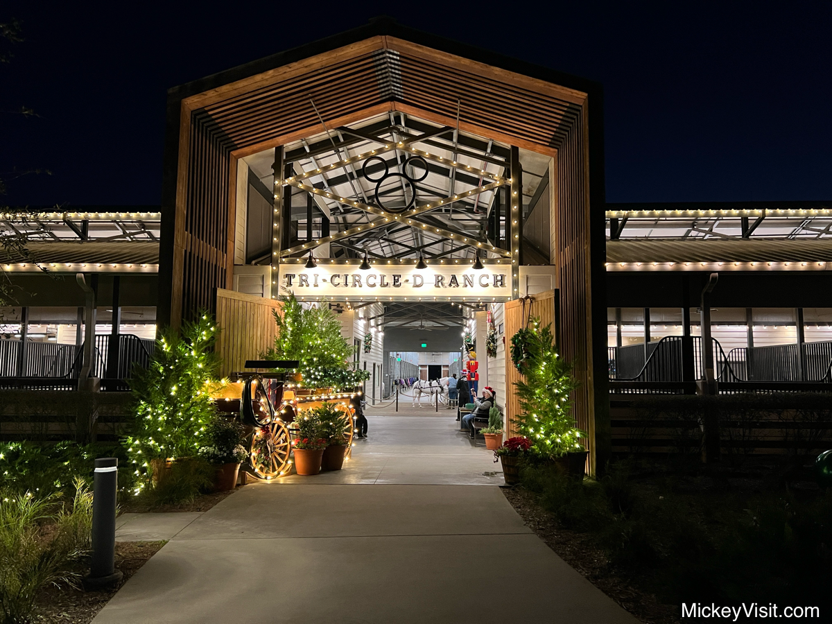 Walk into the barn area which is all lit up and decorated for the holidays.