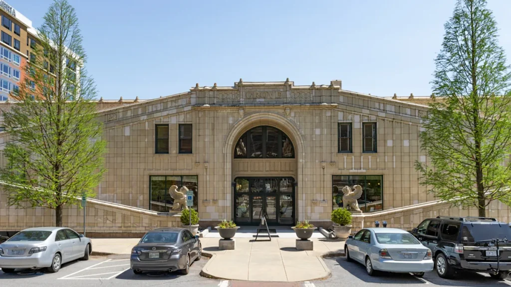 Travelers living within driving distance of Asheville should hop in their cars to reach the Grove Arcade. There’s plenty of parking. Those coming from farther out should try to finagle a flight to Asheville Regional Airport. It may be a bit of a logistical hassle, but it spares you the 128-mile, two-hour drive you’ll face if landing at Charlotte Douglas International Airport, the closest major transit hub. Finding the mall isn’t hard. Make your way to downtown Asheville, and while there, be sure to visit the River Arts District, a creative hub with shops, food, and galleries that’s only four minutes away.