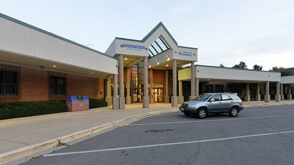 Located on Olney-Sandy Spring Road, Sherwood High School serves approximately 1,700 students in grades 9 through 12.