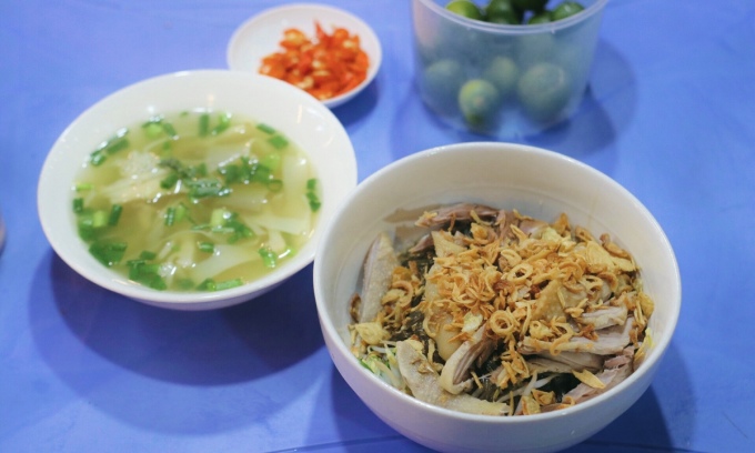 The menu provides a variety of goose-related dishes corresponding to noodle soup, combined glass noodles with goose, boiled goose, in addition to roasted goose with fried garlic, priced between VND50,000 and VND300,000 ($2 to $12).