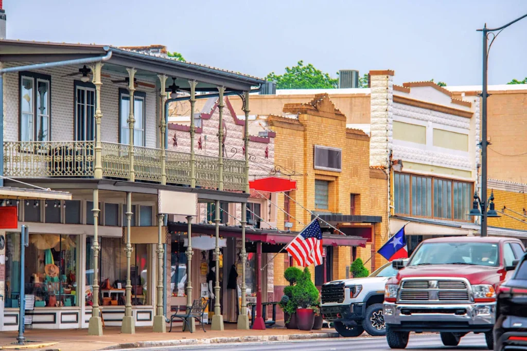 Fredericksburg, USA – November 2, 2023: The Main Street in Frederiksburg, Texas, also known as The Magic Mile, with retail stores. (travelview/Getty Images)