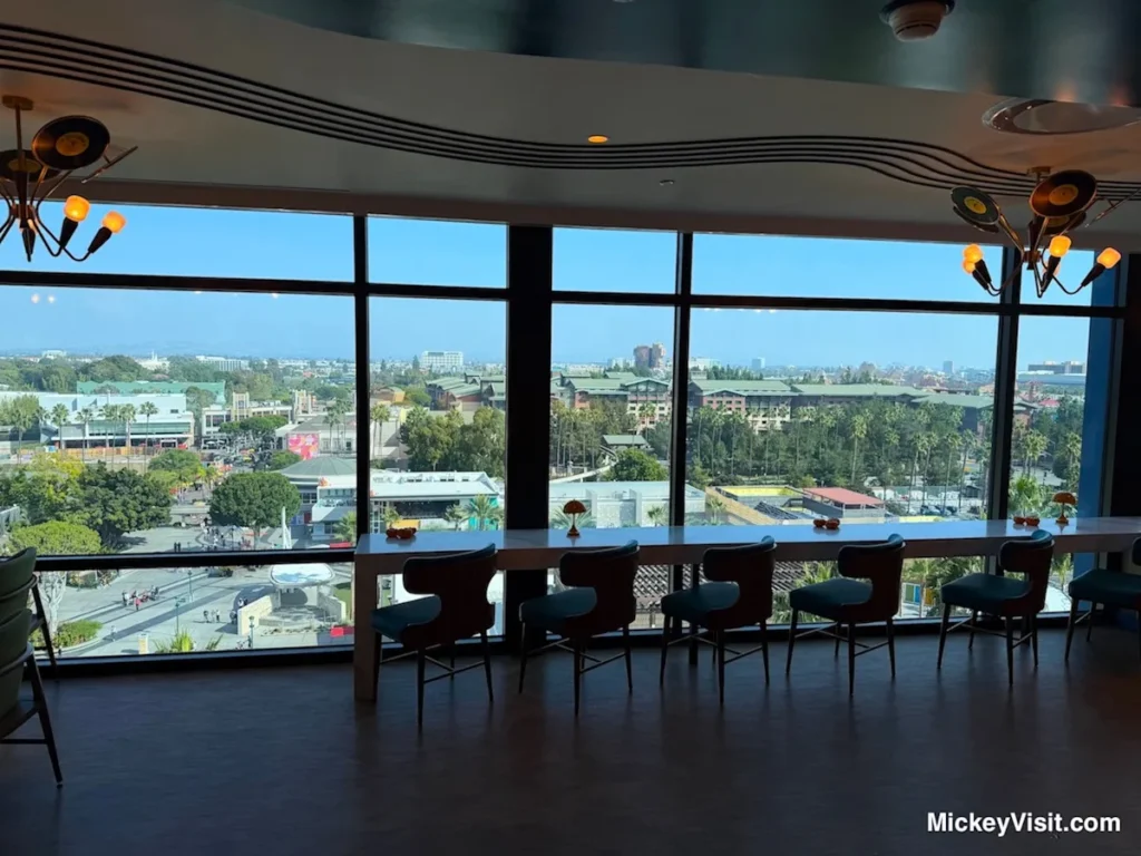 The High Key Club is located on the 11th floor of the Adventure Tower, offering views of the resort. The lounge looks out broadly over Downtown Disney and the parks, providing a good line of sight for fireworks in the evenings.