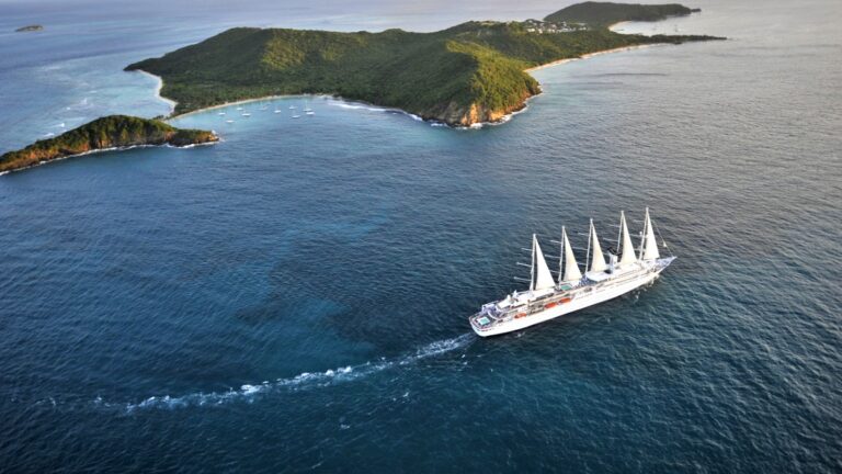 Despite having a massive interior volume of 14,983 gross tonnes, Club Med 2 has a draft of just 16’4″, which means it can access shallow anchorages other ships can’t in destinations like the Bahamas and British Virgin Islands. After spending the northern hemisphere summer toggling between week-long and shorter, weekend itineraries in the Med, the vessel crosses the pond every winter for its Caribbean program, offering guests the option of a transatlantic crossing.