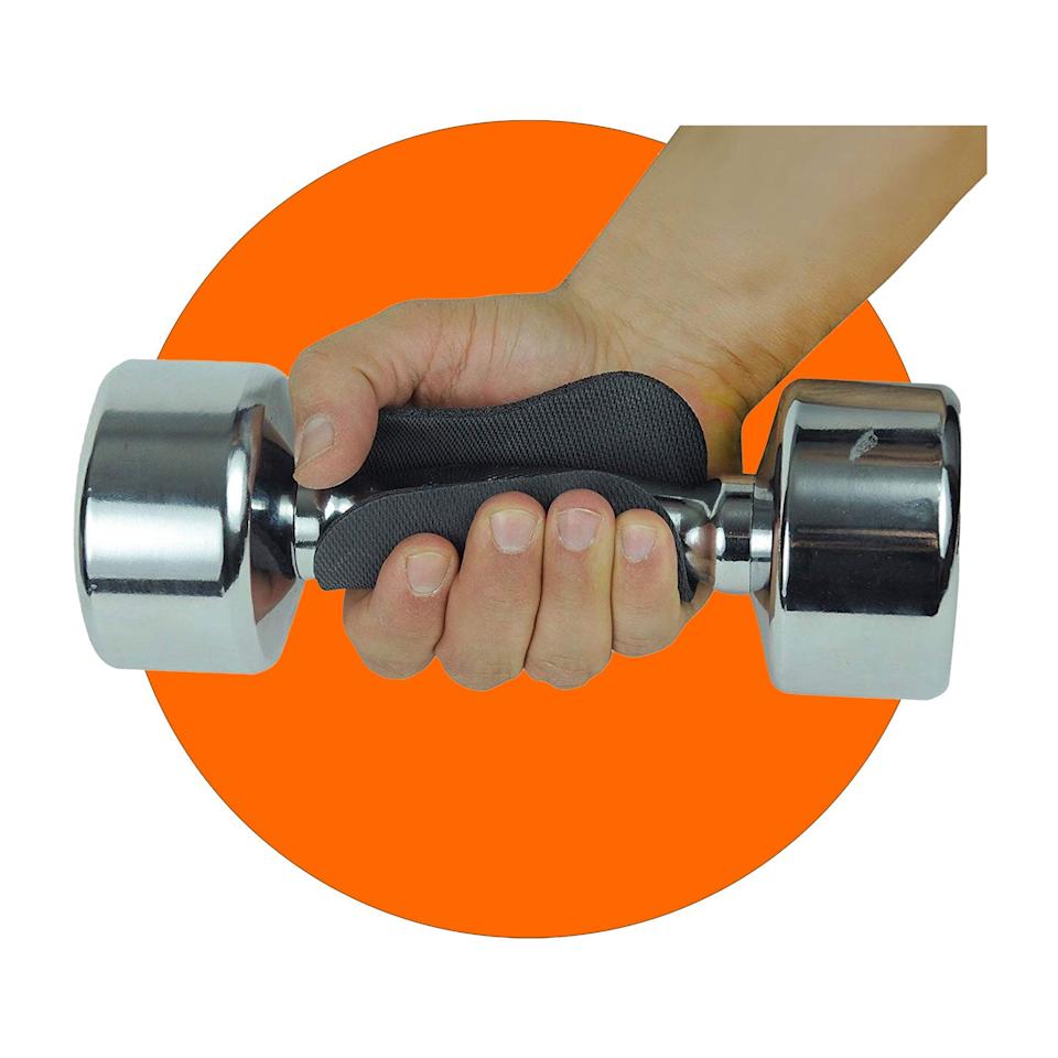 “Training your bare grip is important if you want to lift heavier with proper form,” Andriakos notes. But if her palms are raw and sensitive toward the end of a workout, “I grab these cheap rubber squares for a little extra reinforcement.” (She prefers to use the pads for accessory work requiring grip endurance, like hanging knee raises, as opposed to larger lifts like deadlifts, as bare grip strength provides sensory feedback for better control and helps you maintain a safer, stronger hold.)