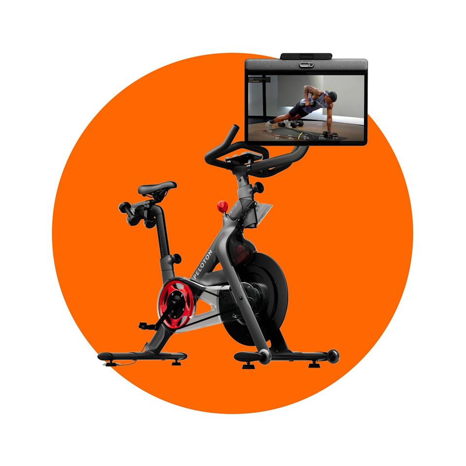The latest Peloton bike features a 360-degree swivel screen so you can seamlessly jump from cardio to floor work. The star, though, is the Peloton IQ feature, which has a camera and uses AI to cue form tips, count reps, suggest heavier weights, and plan your workouts based on your exercise history. Oh, and we dare ya to find another stationary bike that lets you adjust workout speed and has voice controls so you can pause a workout without dropping your weights.