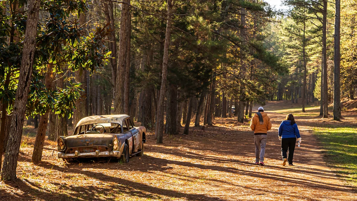 Today, the most visible signs of that heritage are the occasional rusted, gutted automobiles laid to rest along the margins of the hiking trails. These old vehicles are quiet now, but they recall a time, just after World War II, when NASCAR drivers competed in beefed-up street vehicles. You’ll also see an old ticket booth, defunct telephone poles, and other artifacts from the speedway’s heyday — each one a dream for antique car enthusiasts and artistically minded photographers.