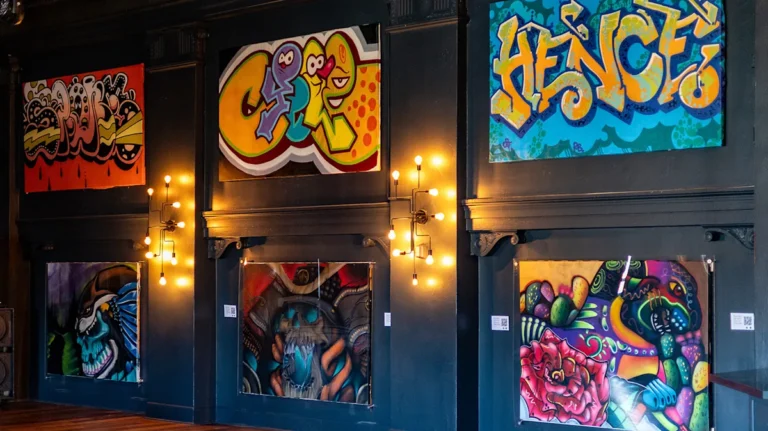The canvases, commissioned from the original artists, were created in the same fashion as the originals: with only aerosol spray paint. Thousands of pieces are in the collection (with more being brought in still), but how many are on display at any one time depends on the exhibition. The “Prophets, Teachers & Kings” (PTK) project might be AMGRAF’s greatest sub-collection of artworks; Carswell described it as the “standing pinnacle” of the genre in Made in Shoreditch Magazine. Featuring more than 100 original pieces — including a 105-foot mural created by the venerable Under the Influence crew out of Los Angeles and telling the story of an urban street artist — PTK works are always on display at the gallery.