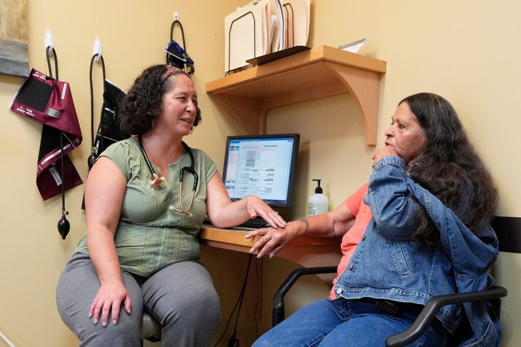 On the center’s last day, longtime patient Susan Bushby, a 70-year-old housekeeper, stopped by to check her blood pressure — and to get a hug from LaDuke. Bushby had come to rely on LaDuke’s comforting words over the years and admits she is worried about finding the same kind of reception when she goes to one of Ammonoosuc’s other centers.