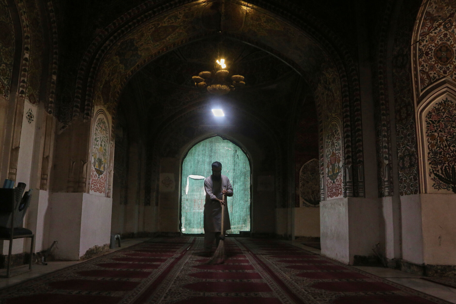 Pakistan Ramadan A worker cleans an area of the historic Mahabat Khan mosque in preparation for the upcoming Muslim fasting month of Ramadan, in Peshawar, Pakistan, Monday, Feb. 16, 2026. (AP Photo/Muhammad Sajjad)