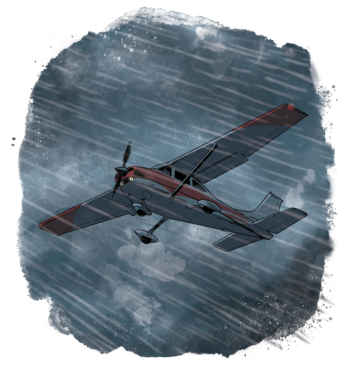 Then all hell broke loose. We had entered a line of heavy showers, and it started raining buckets. The turbulence was so severe that I slowed down to maneuvering speed and turned off the autopilot, given that it couldn’t handle the rapid altitude changes. I hand-flew the plane and focused on keeping the wings level while my girlfriend clung to the dashboard.