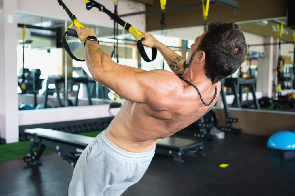When programming suspension trainer exercises for clients, Lee uses higher reps in the 12 to 20 range. Because the resistance is so easy to adjust, suspension trainers still allow you to push close to muscular failure in a safe way. As for the big picture, using them makes it easier to apply progressive overload and build muscle from home.