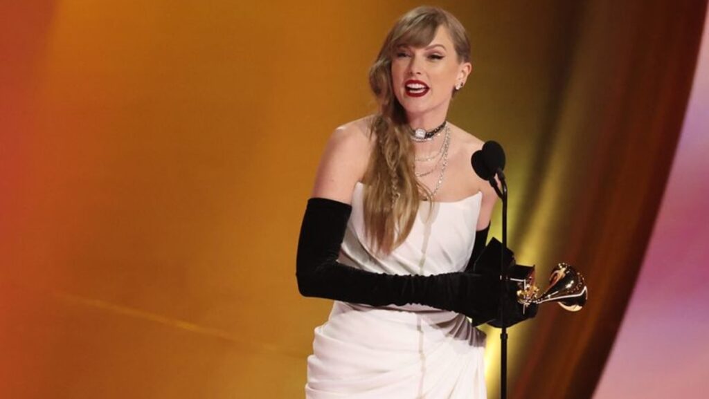 Taylor Swift broadcasts new album whereas accepting Grammy
