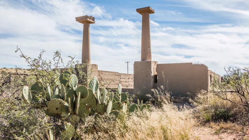 Neglected resort building in the ghost town of Agua Caliente, Arizona – Cactus Atlas / YouTube