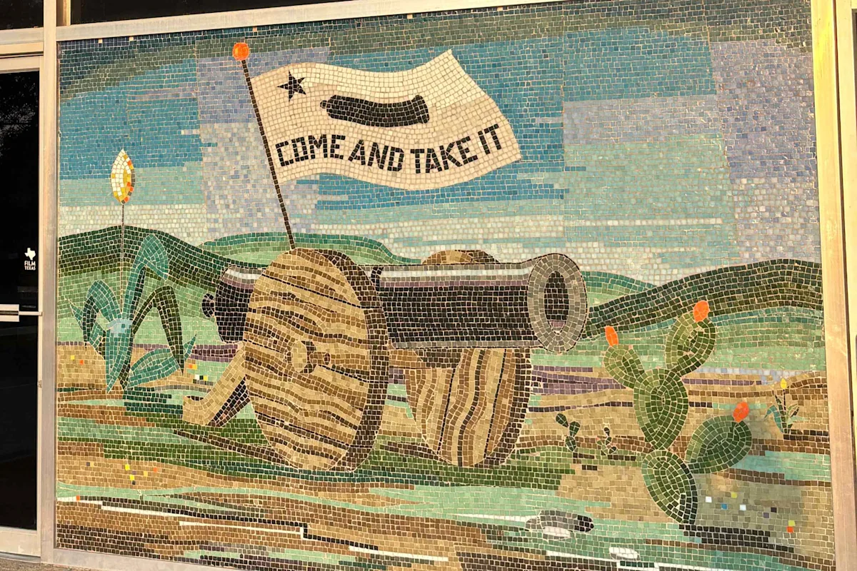 In Gonzales, nods to “Come and Take It” are everywhere, from the trash cans to street murals to a tiled piece in front of the Gonzales Municipal Building. See how many you can find and make a fun scavenger hunt out of it.