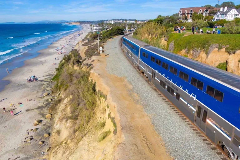 • Amtrak’s Pacific Surfliner is a scenic 351-mile coastal route that travels from San Diego to San Luis Obispo.