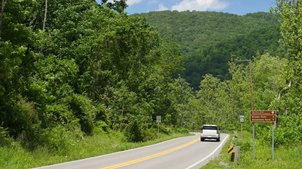 It’d be easy to blow right past the road’s entry, off the US-19 expressway just north of Birch River, WV. But the detour is well worth it. Look for the signs for County Road 19/3, the official name for Polemic Run Road. From the highway, it branches off into the woods, leading to the summit of Barnett Hill (about 1.5 miles). As you pass the turnoff for Crooked Road on the left, the scenic route becomes County Road 38. You’ll drive through a quiet hemlock forest for nearly four miles, heading back downhill until you reach the picturesque Little Birch River. Cross the bridge and continue along County Road 28, which runs parallel to the stream. In about three miles, you’ll connect once more to the US-19 expressway.