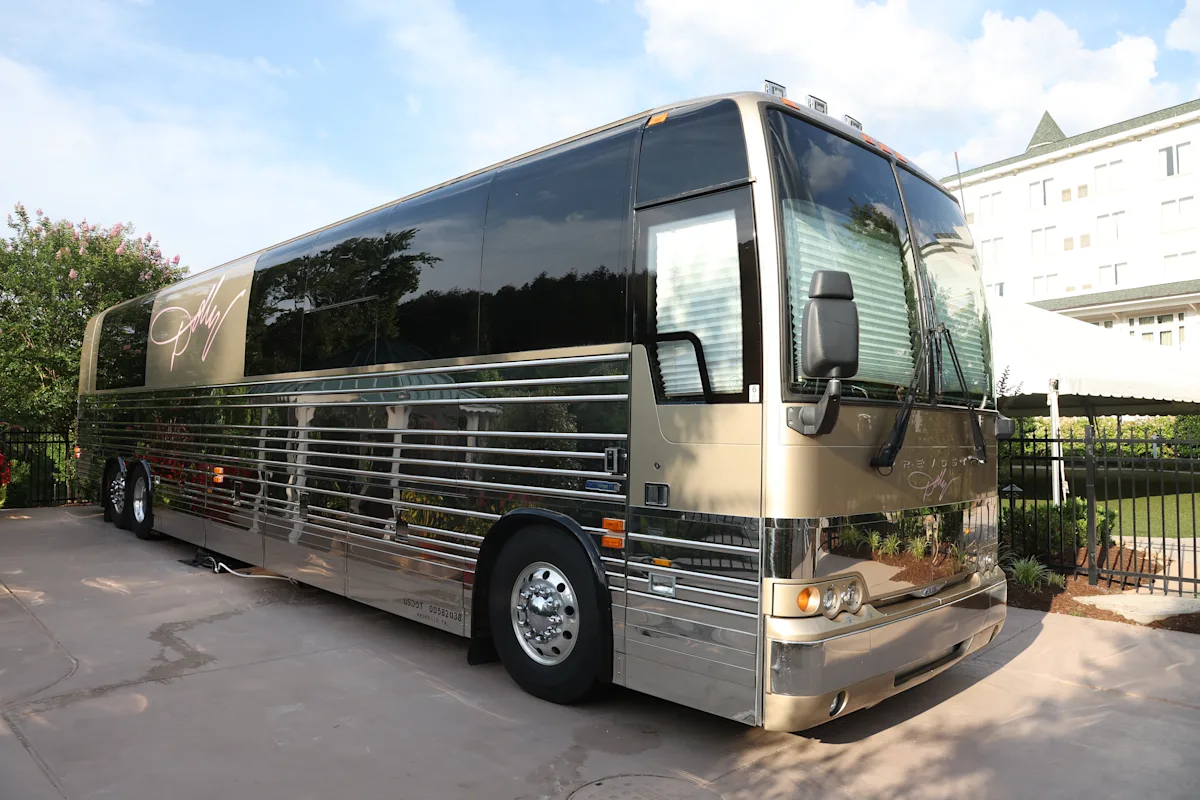 The 45-foot coach’s exterior is shiny and flashy, with a sleek silver and black exterior, and “Dolly” scrolled in cursive across the side. Parton is famously afraid to fly, so the bus was her home away from home, traveling the country and covering more than 360,000 miles before its retirement in 2022. I had a chance to tour the bus on a recent visit to Dollywood. This is what it is like.
